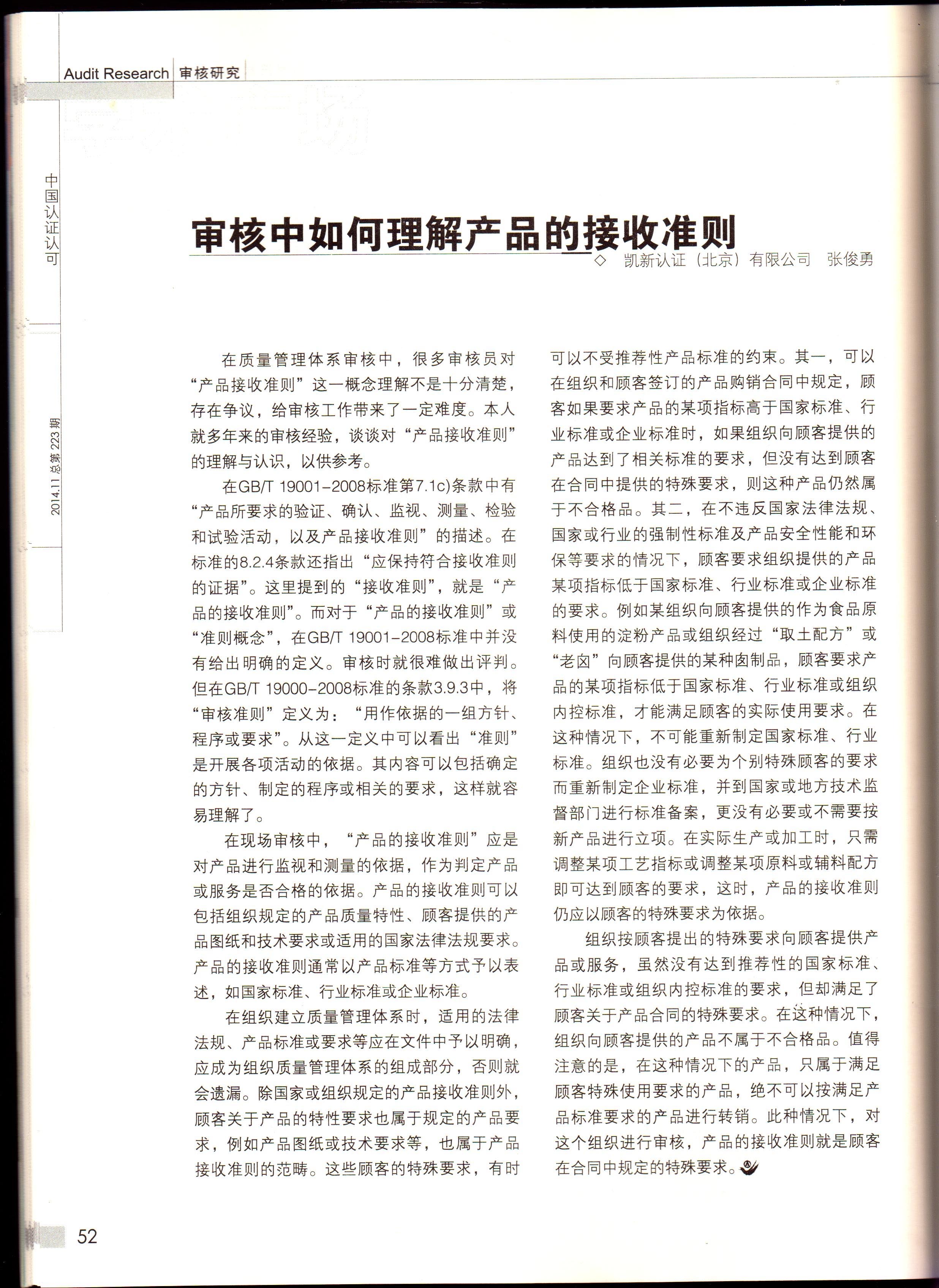 關于張俊勇老師文章喜獲《中國認證認可》雜志刊載新聞稿