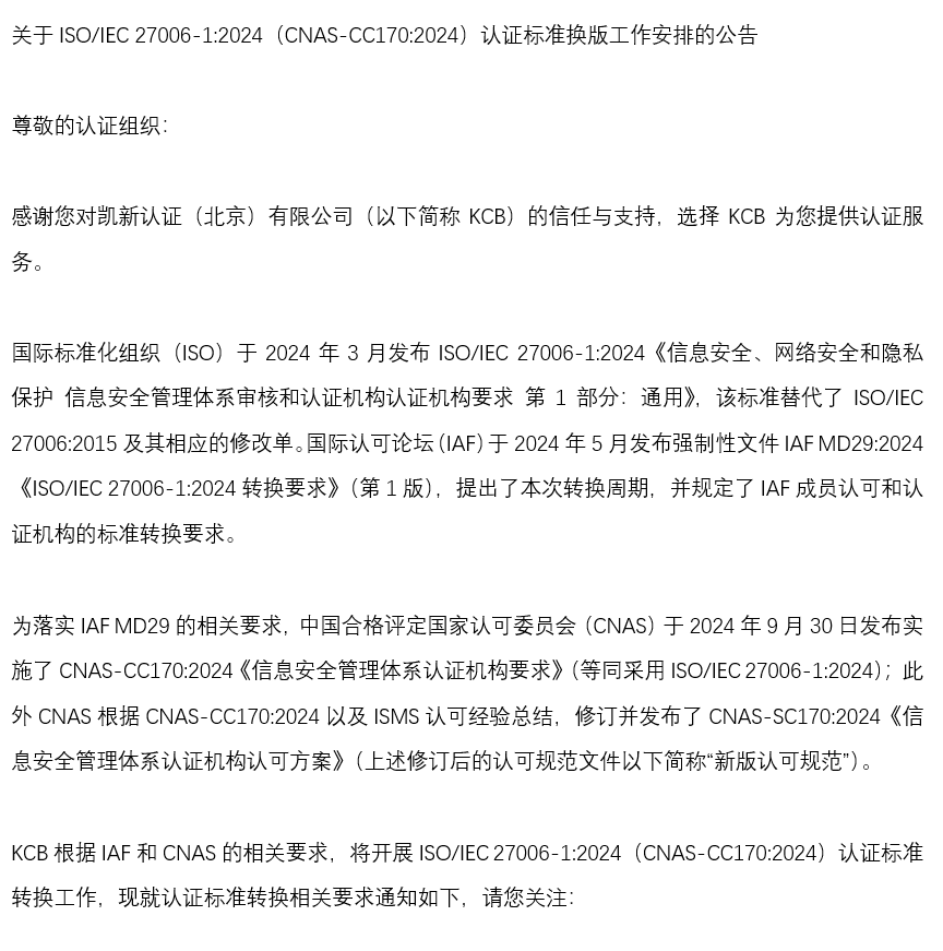 實施公告關于新版《質量管理體系認證規則》 實施的公告